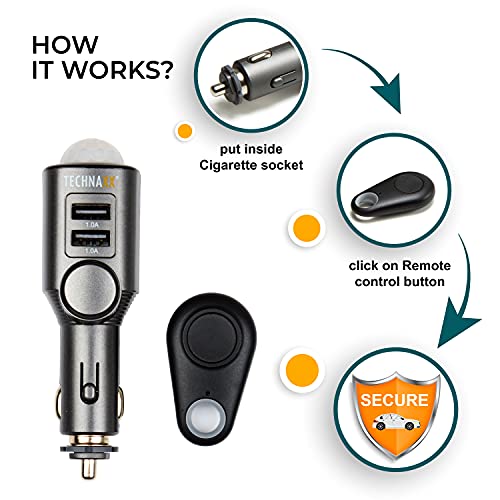 Technaxx TX-100 Auto,- camper-, boot-alarm/mobiel mini-alarm met bewegingsdetectie + afstandsbediening en autolader 2x USB, 6 dagen standby. 110db alarm geluid voor afschrikking