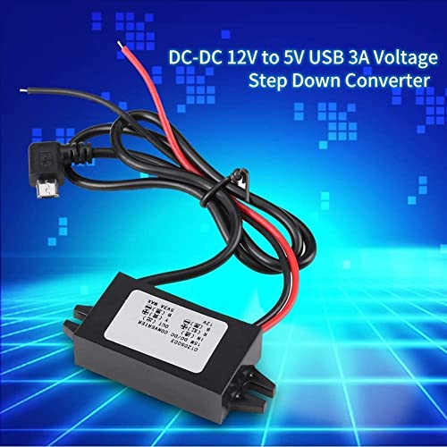 Specification: LANTRO JS – Stroomadapterconverter, DC-DC 12V naar 5V 3A Micro USB-omzetter Spanningsregelaar, waterdichte stroomomzetters voor auto-smartphone