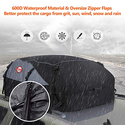 de dakkoffer voor de auto is 100% waterdicht. Met afdekkingen bij de ritssluiting wordt er de beste bescherming geboden tegen weersinvloeden, zoals hevige regen. Hij is gemaakt van 600D waterdichte materialen en deze stabiele dakkoffer is veilig genoeg om je bagage tegen regen, wind, sneeuw en vuil te beschermen