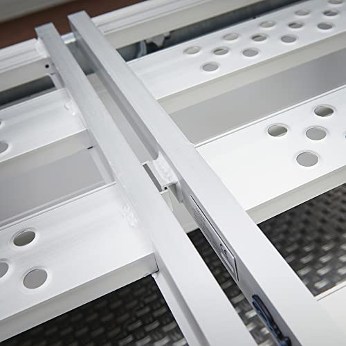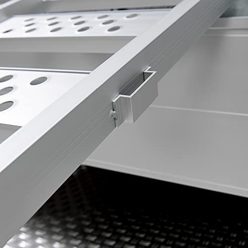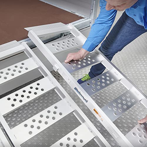 Naast dat de platen in elkaar te haken zijn, zijn ze natuurlijk ook als drie losse oprijplaten te gebruiken. Dit maakt de 195 cm lange oprijplank multifunctioneel. De oprijplaten zijn voorzien van een handige opstaande rand en anti-slip profiel. Naast de 10 cm overlap aan het uiteinde van de plank, worden ze ook nog eens geleverd met een extra sjorband voor stabiliteit. Door de grote ruimtes tussen het profiel, zijn de drie oprijplaten niet geschikt voor voertuigen met kleine wielen.