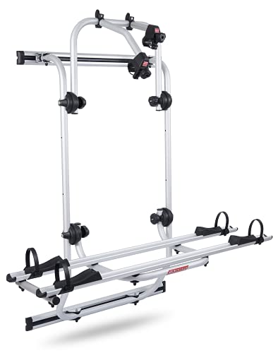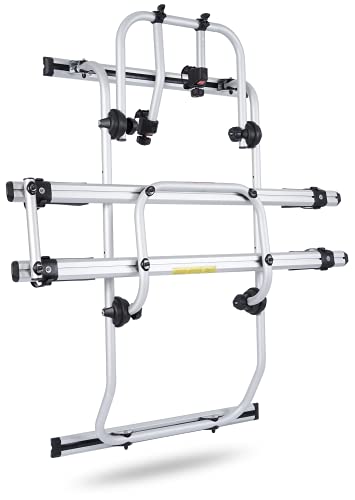Fietsendrager voor achteraan voor bestelwagen en camper met dubbele achterdeur, van elektrisch gelast aluminium.